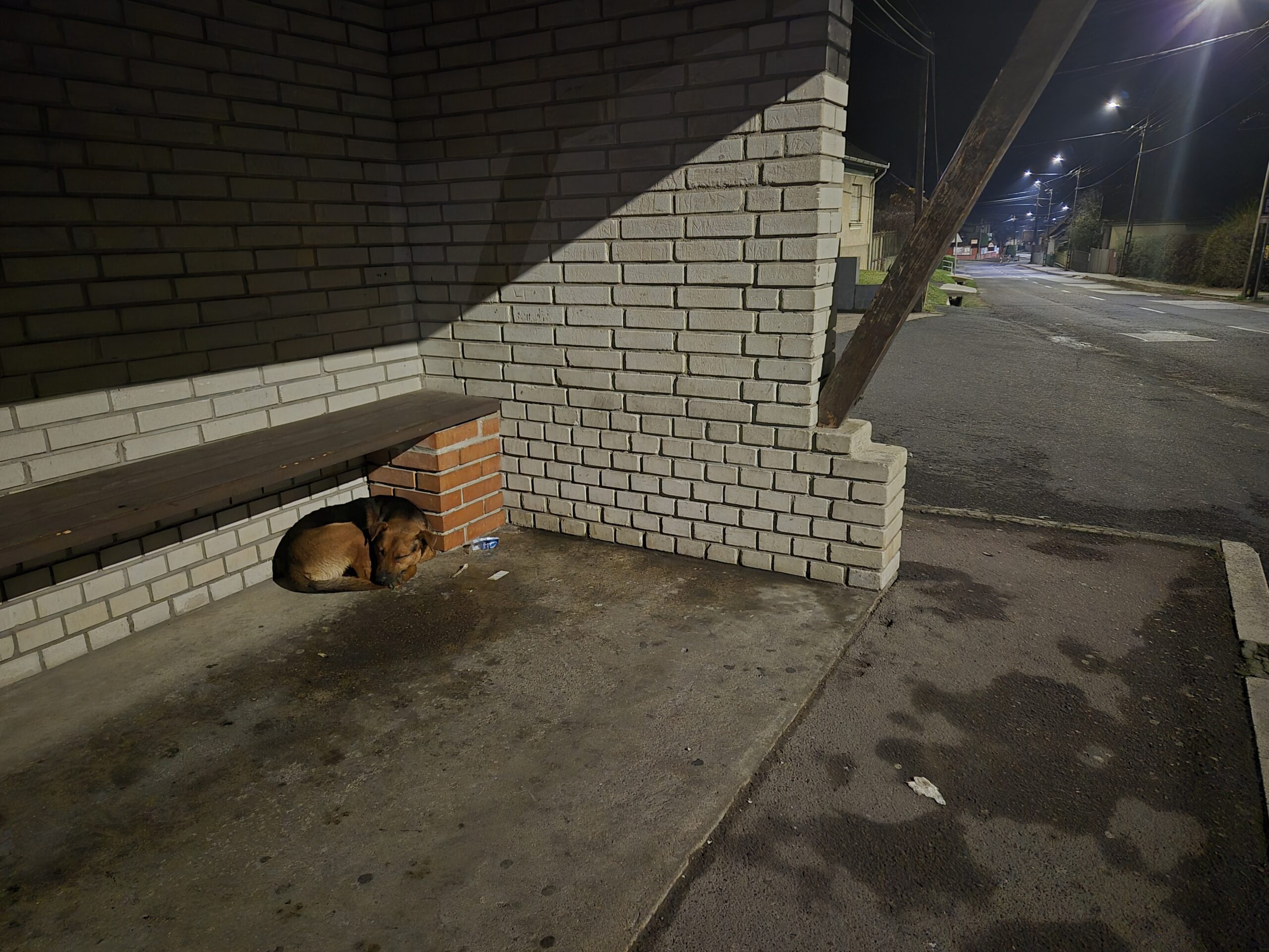 Szépen tartott láthatóan fajtiszta vagy legalábbis jól ápolt kutya volt mielőtt kóbor lett. Láthatóan alultáplált már, eleinte sántított inkább óvatos, tudtam neki kaját adni félénken odajött megszagolni, nem agresszív. Szomorú és fél, előzőleg biztos többször ráijesztettek már. Hosszú ideje először jártam a faluban, sajnos utaztam vissza a lakhelyemre ugyhogy nem tudom mennyi ideje kóborol. Lehet keresik is.
